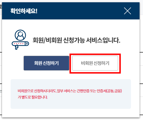 저는 비회원 신청하기 버튼으로 진행해 보겠습니다.