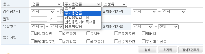 또는 유찰 횟수를 설정하시고 검색하시면 유찰된 경매만도 검색이 가능합니다.