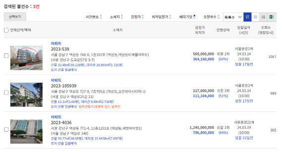 4. 관심지역의 아파트 경매물건 검색된 게 보이실 겁니다.