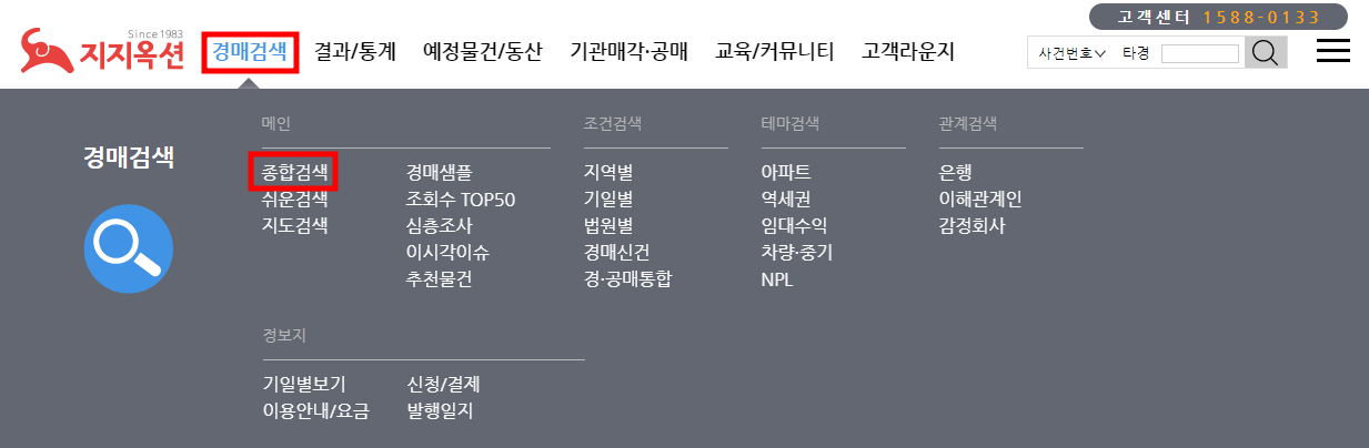 2. 지지옥션은 유료로 경매정보검색이 가능합니다.