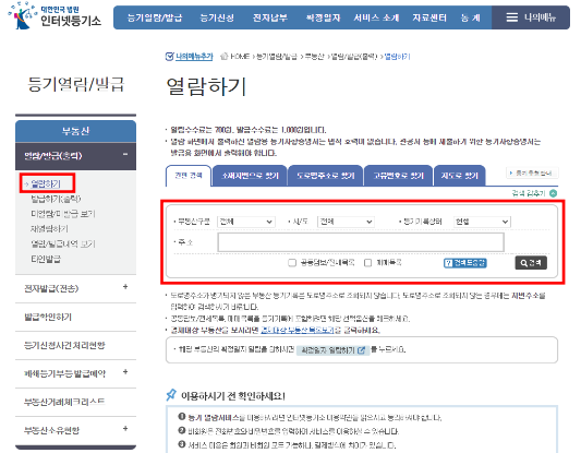 1. 등기사항증명서 열람방법