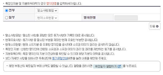 공동담보/ 전세목록, 매매목록을 선택하시면 열람용 등기사항증명서 열람 시에 해당목록을 함께 열람하실수 있습니다.