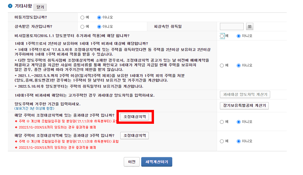 모의계산 아래 부분에 조정대상지역 버튼 클릭하면 팝업창이 하나 뜹니다.