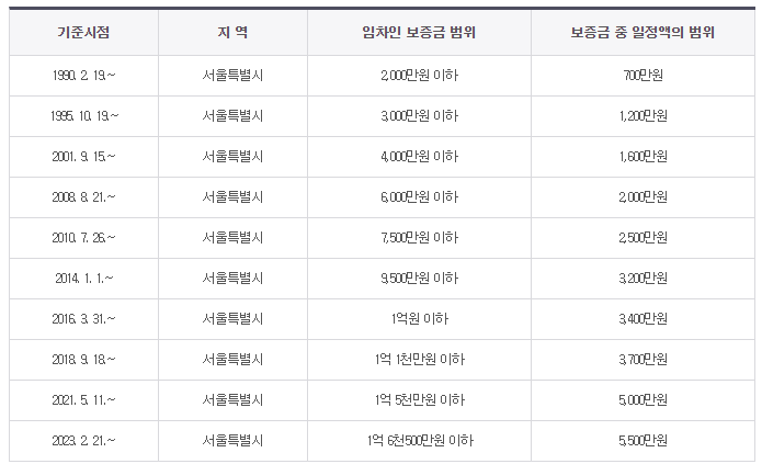 아래 링크를 통해서 지역별 소액임차인의 범위 임차인 보증금 범위를 확인해 보세요.